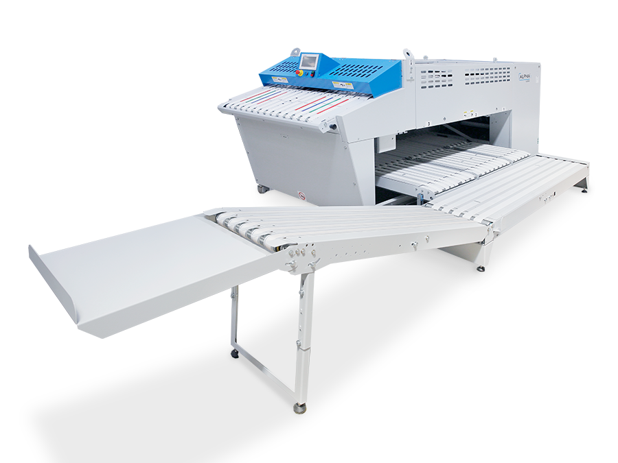 Lateral fold is performed by mechanical folding blades, guaranteeing fast folding and a unique stretching effect to the linen